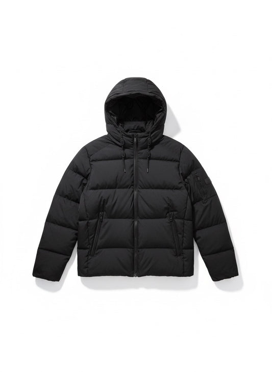 Armani Exchange Black Hooded Puffer Jacket with Arm Pocket