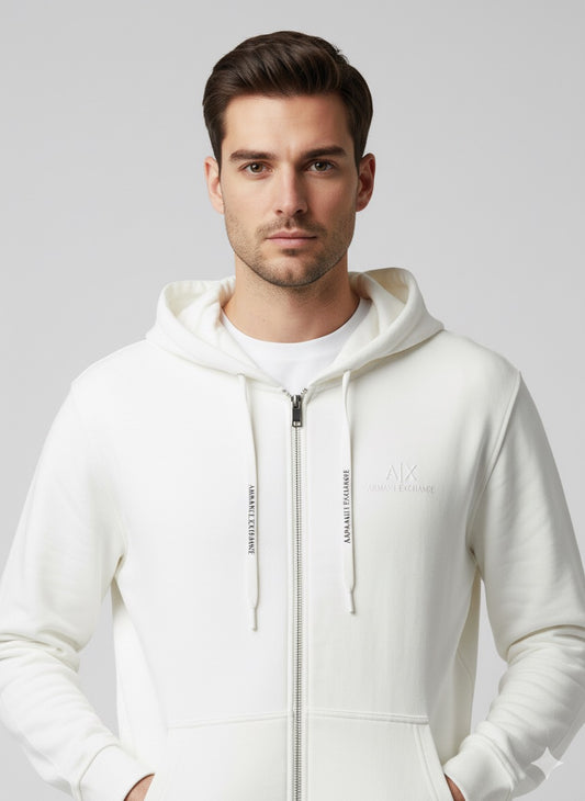 A|X Armani Exchange White Full-Zip Hoodie with Embossed Logo